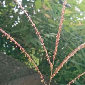 ススキの穂先に花がみられます。 陽射しに✨輝いて出穂がとても綺麗で… 秋の気配を感じます💖 株が大きくなると根張りも含め手入れが大変なので鉢植えで管理してます。 【 ヤバネススキ(矢場薄) 】 別名/ タカノハススキ(鷹の羽) 初夏に葉に矢羽模様が現れて清々しく とても綺麗です!! 生け花、お茶花… 🎑お月見にと。 季節の風情を表してくれるイネ科。多年草です。