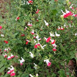 小春日和りもすぎての12月になった。 今週になり☔雨降りで日照時間も少なく気温が低くなりかなり冷え込んで~冬冷えになってきた。 そんな気候でも。。。 夏の暑さや冬の寒さに負けることなく育ってくれてる植物もある。 畑の一角に防虫の為にと植え込んだ🌿ミント(写真の根元左下部に) 陽気がよかったのか🐛食害されている🍃葉がみられます。 とともに… チェリーセージの花が咲いている。 サルビア・ミクロフィラ「ホット・リップス」 このホットリップスの赤と白の割合は、気温によって変化します。気温が低い春は白の割合が多く、高くなってくると赤の割合が多くなってくるおもしろい品種です。 開花から花色の変化も楽しめて何種類も植え込んでるように見えてとても綺麗💞 ここは通り道でもあり道行く方々が立ち止まり冬空のもと(ハーブとは知らず…) なんの花かしらと? 綺麗ね!! って 呟きながら眺めていかれてます(o^-^o)💟