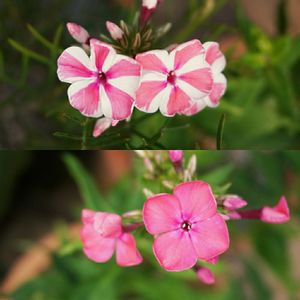 こんにちは😊 宿根【バーベナ ジャックポットクィーン】さん💕 今年も可愛く咲いてくれました😍 ん…?!ピンクの茎から白い子が咲いてる😳 先祖返りかしら🙄
