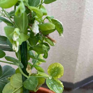 サヤエンドウ 初収穫しました🌱 花が咲いたと思ったらあっという間に実がついて 嬉しい^_^♪