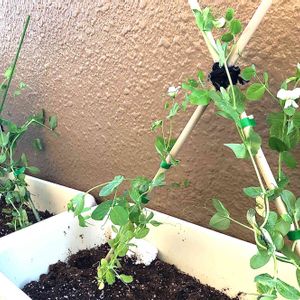 実家のプランターのサヤエンドウに花が咲いていました。 食べられるようになるのが楽しみです。