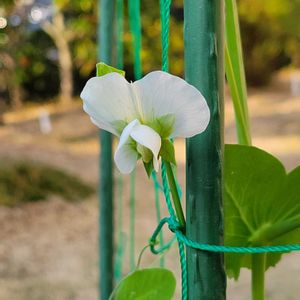 サヤエンドウのお花が咲いてます🤍 4月に収穫予定で蒔いたのに今頃実ってしまって驚いているとのことでした🫛🎶😅 🏷️白い水曜日♡