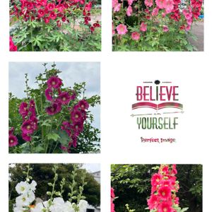 間違えて消したので再投稿します 🍀🌻🪴💐🌹🌻🍀 🍀♥️タチアオイ♥️🍀 💐タチアオイの花言葉は(野心) (大 望) (豊かな実り)です 💐タチアオイはアオイ科タチアオイ 属(ビロードアオイ属)に分類され ている一年草または多年草です 💐一番上の花が咲くころに梅雨が明 けるといわれることから別名梅雨 葵(ツユアオイ)と呼ばれています 💐タチアオイは6〜8月が開花時期で、 梅雨時期ごろから1〜2mほどの高 さの茎に、沢山のつぼみを付け、 下から上へと花を次々と咲かせて いきます 💐花びらは一重(ひとえ)咲きと花びら が重なる八重(やえ)咲き、その中間 の半八重(はんやえ)咲きがあります 🍀🌻🪴💐🌹🌻🍀