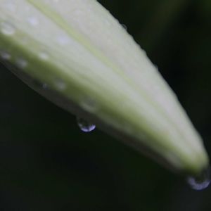 ユリ コレはテッポウユリかな 百合で有名な沖永良部の球根から このつぼみ この雫 雨が多い時期に 自生の白百合が咲きます もうすぐ開く それまでのつぼみと雫