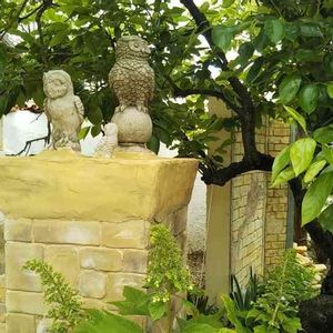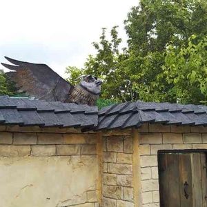 ローズブランチさんのオープンガーデン💕 モルタル造形の屋根の上にワシ?のオブジェ👀