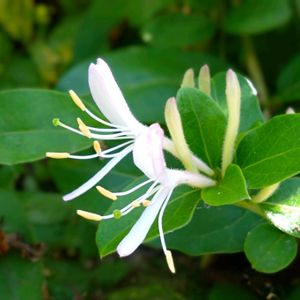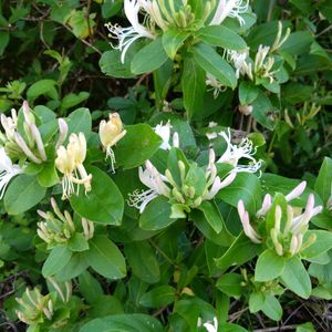 今年も咲きました〜♡ 真っ白なぁ〜🍃 大好きなスイカズラ✨✨ イボタノキも…ウチにいたのね…🤔 実家庭にひっそりいたのは、何年か前に知ったけど💦 自宅放置庭にもいたのね😅知らなかったわー😂ごめんなさい💧