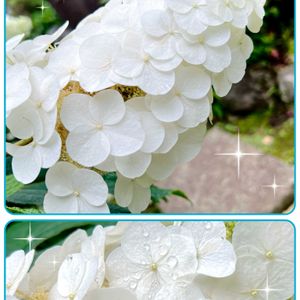 🏷️ビューティフルサンデー 真っ白な柏葉紫陽花が素敵です✨✨✨ ソフトクリームが食べたくなりました🍦😋🤍🤍🤍 2枚目、装飾花に守られてるような☺️ものと、放任な?😅花の様子
