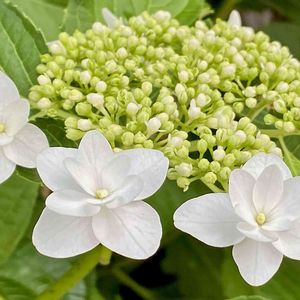 白い花の紫陽花が欲しかったので ちょっと変わった、紫陽花、を ラグランジアの種類で、枝の先端にだけ咲く従来のアジサイとは異なり、側芽からも花が咲き、枝いっぱいに豪華に咲き誇る!っと記載 に負け持ち帰りました。