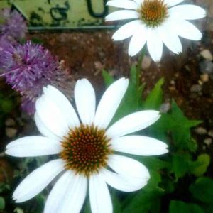 真っ白いエキナセア( *˙0˙*) 日当たり悪いせいか あんまり花数増えず😰 移してあげよう!
