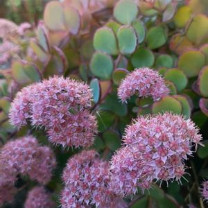 今日のお花 ★エッチュウミセバヤ(越中みせばや) ★ ベンケイソウ科の多肉植物 花期:秋 ミセバヤの変種で富山県固有種。やや大型。多肉質の丸い葉が3枚ずつ輪生。花はミセバヤよりもやや薄いピンク色の小花が球状に集まって咲く。葉の縁が赤く紅葉。 ー主なミセバヤの種類ー ※ヒダカミセバヤ 北海道東部に分布、小型種、葉にギザギザ、桃紅色の花。 ※カラフトミセバヤ(エゾミセバヤ) 北海道に分布、葉は対生or互生、灰青色で縁のギザギザ無い。 ※ツガルミセバヤ 青森県や秋田県に分布、大型種、葉は卵形、8月に房状の白い花。 ※ユウバリミセバヤ 夕張岳に分布、カラフトミセバヤの変種、より多肉質、赤みを帯びた葉。 ※白雪ミセバヤ 白い粉で覆われた葉が特徴。 2025.11.3 筑波実験植物園📱