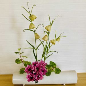 庭の貝母百合がかわいいので、玄関にいけてみました😊 今日は、冷たい雨が朝から降ってます。昨日貝母百合を摘んでおいてよかったです。