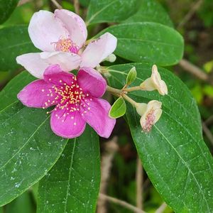 テンニンカ(天人花)🌸 素敵な桃色の花、 花言葉は『愛』♡ SNSで開花情報を知り、広いバンナ公園を捜索、二日目にやっと出逢えました😊。
