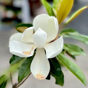 タイサンボク 矮小種 リトルジェムちゃま💓 花が背の低い時期から良く咲き、モクレン系特有の質感の純白で⚪️大輪のお花を咲かせてくれます。 甘い香り 葉の表は艶やかな深緑で、裏はビロードの質感を帯びたブロンズ色✨