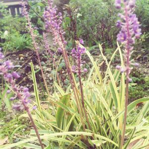 庭の斑入りのヤブランの花 です❣️ みなさんの投稿が早くて、まだかまだかと待ちくたびれました。 遅れついでにアップも遅れてしまいました💦