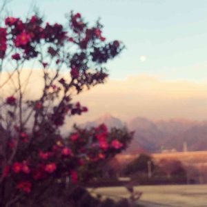 早朝散歩🚶♂️からのサザンカと 沈みゆく朝焼けの月🌕 サザンカの花びらが散りかけていました!ツバキは花ごと落ちるのにサザンカは花弁が散ります☝🏻 ぼーっと何気無く撮ったpicになってます🙂この風景がいいなぁ〜と思っただけなんです、、、