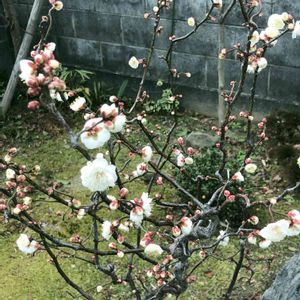 今日の花🌸急いで咲かなくてもいいのに 庭の雲竜梅が咲き進んでます❣️ まだ咲いてない蕾もまだまだたくさんあるのでまぁ〜 いいか、、、