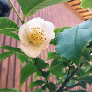 夏椿(別名ヒメシャラ)の花が、咲き始めました❣️ 隣家の壁があまりにノッペラボーなので、 5年くらい前に植えたのですが、陽当たりが午前中だけなのでポツポツな咲き方です! それでも以前よりは良くはなって来てるので今後期待したいところです。 もう1本くらい植えないと壁隠しにならないのです☝🏻