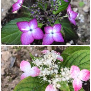 紫陽花1番花が 咲き始めました❣️ この子横にいた子は、花友さんちへ嫁入りしました! チョット寂しそうw だったので小銭入れだけ持って山野草の店へ行って来ました! 明日、picアップしますね❣️