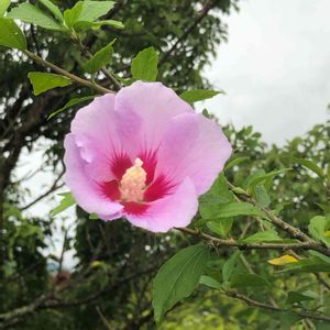 ピンクの木槿(ムクゲ)です☝🏻 アオイ科フヨウ属 別名ハチス、もくげ、 買い物の帰りに見つけましたl