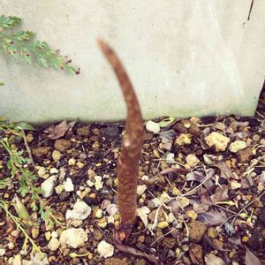 ここに花後の アレを植えて置いたんだけど かれこれ1年半?もっとかな、眠ってた子がやっと起きてくれました❗️ 少し痩せた子だけどうれしいな❣️ 庭パトするもんだね☝🏻 あれですよ! 太らせて立派な姿にしてあげたいなぁ〜!