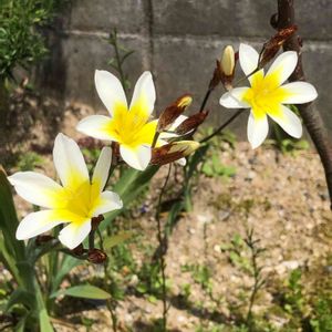 おはようスパラキシス! 早朝散歩🚶♂️から戻ったら咲いてくれていました❗️ 去年?も3輪の花をアップしたと記憶してます!? 去年お隣りさんから貰ったものです😊 スパラキシス3兄弟です。