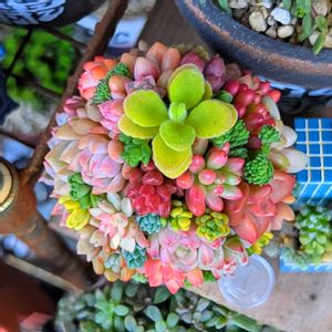 今日の多肉ちゃん 寄せ直し 実は月曜日夜中 緊急搬送されました のたうち回る位の胃の調子が悪くて震えがあり吐いて旦那が救急車を呼びました🚑 意識無くなりそうで死ぬかと思った 病院で点滴をして頂き 1日入院と言われましたが帰って来ました 次の日主治医に診てもらったら 胃に炎症がありストレス性胃腸炎と風邪と持病の新しく出された薬が合わなかったみたいです 薬を元に戻してもらい 胃薬と風邪薬ももらって少し落ち着きましたが 体力を一気に奪われ全然ついて行かれません💦💦 みなさんも薬の飲み合わせにはご注意を💊 体力戻す為に 寄せやってみた 体力と関係ないか🤣🤣 少しづつ復活