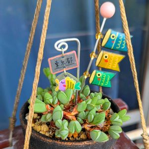 今日の多肉ちゃん 段々と朝夕涼しくなってきたので たにくごとが楽しくなってきましたね 💜どうする家康💜鉢も可愛くしてみた