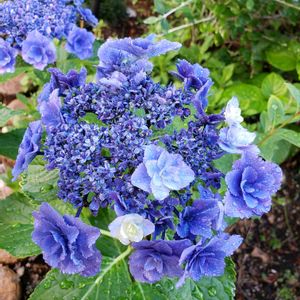 ①深海の色 鉢植えだった昨年までは赤でした。 深海、こんな色もあるかも💙と思っちゃいます ②てまりてまり こちらは涼しげな大きなてまり✨地植え1年目 ③ママン ヤマアジサイのように細枝なんです。 ブルーに咲かなくて小言をいっていましたが、赤っぽい縁取りに色の変化があって美しいです。 ④コットンキャンディ 色が褪せてきて、いい感じです♡ ⑤ユーミー トゥギャザー ずっと名称不明と言っていたアジサイ。まとめ買いした時の品名を照合し直して、名前が判明 小ぶりの手まり咲きですが、色の変化が素敵で可愛いです💙