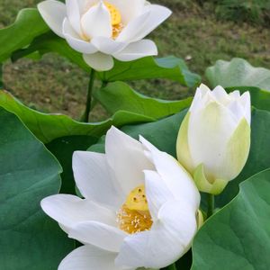 久成寺の境内で大きな鉢植えになってる蓮の花 毎葉蓮は、塔の前で蕾を開き三花満開です 富士山麓小山町、御殿場市は今日からお盆です