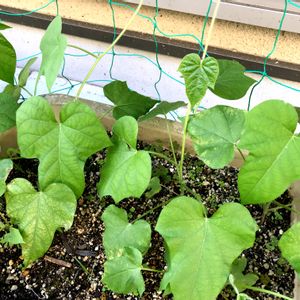 おはようございます。 朝顔元気に育っています🍀🍀 ツルが伸びてきました。 今年は上手に摘心して育てたいです(^o^)