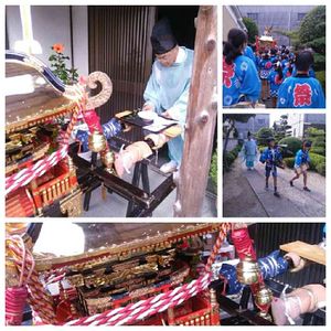 地方祭のpicをもう一枚 宮出しした後、町内に分かれ て各家家を巡回し神主さんにお祓いをしてもらいます。 一輪咲いたハイビスカスさんが神主さんを珍しそうに見ていました。(^^ゞ