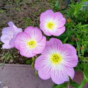 種まきからの 桃色月見草が咲きました 昼に咲く一日花🌸です