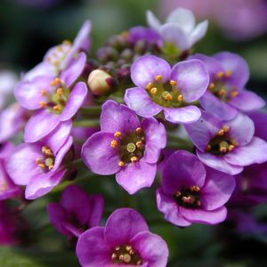 12月21日 今日のお花『スイートアリッサム』です。 【スイートアリッサム】 地中海沿岸原産、アブラナ科の多年草 小花がたくさん咲き、花束のようにこんもりと生い茂る姿が愛らしい。 高温多湿に弱く、日本では一年草として扱われている。 草丈:10~15cm程度 開花時期:10月~翌4月頃 花色:ピンク、白、紫、オレンジなど 北九州市立総合農事センターにて
