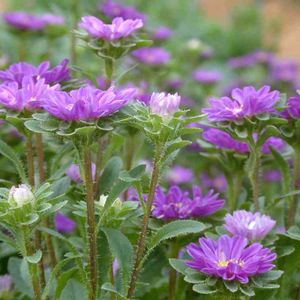 11月19日 今日のお花『アスター』です。 【アスター(エゾギク・蝦夷菊)】 中国北部原産、キク科の一年草。 草丈は30-100cm。 茎は直立し、葉は柄があり、長楕円形で互生、茎・葉共に白い毛が生えている。 開花期は、6~9月。 花は花径3cmくらいの小輪から10cmを超える大輪まである。 花色は赤、ピンク、白、黄、紫などがあり、中心の黄色と美しいコントラストをなす物も多い。 花の形には、一重咲きと八重咲き、重ねの厚いぽんぽん咲きがあり、管弁のものもある。 なお、同じアスターと名が付く宿根アスターや孔雀アスターとは種類が異なります。 北九州市立総合農事センターにて。(6月)