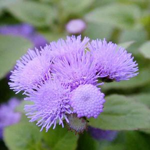 【アゲラタム】 熱帯アメリカ原産、キク科の常緑多年草(日本では春まき一年草扱い)。 さわやかな涼感のある淡いブルーの花色と、ふんわりとしたソフトな質感が魅力の花。 草丈:15~80cm、開花期:5月~11月、花色:青,ピンク,白 北九州市立総合農事センターにて