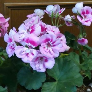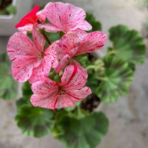 🌼【ゼラニウム・モザイクピンク】と回答いただけました♡ありがとうございます🙇 Q.《ゼラニウムの〇〇みたいに、この子は名前はあるのでしょうか?》特徴としては花弁にしぶきがかかったような模様。葉は普通のゼラニウムです。 ゼラニウムはたくさん種類があり…と調べましたがよくわかりませんでした😟 単にゼラニウム・ピンクてお名前なのかな? 元は見切り品コーナーにいたので、タグは外されていました。 よろしくお願いします。