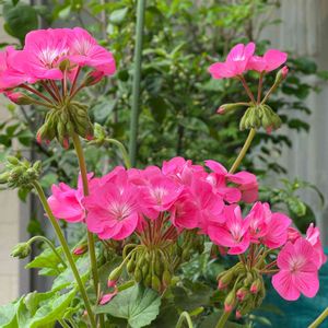 ゼラニウム ストロング 10年ほど挿し穂更新で育っています。 左のピンク単色は50年近くなります。3度の引っ越しでもいつも一緒、今は軒下で3色(ピンク、レッド、ローズ)地植えになっています。