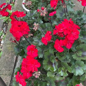 🍀ゼラニューム🍀 昨年お迎えしたアメリカーナNEOさん 軒下で冬越し出来ました☺️ 🏷️にはダークレッドと書いてありましたが鮮やかな花色で連続開花性があり魅力的な花です🥰