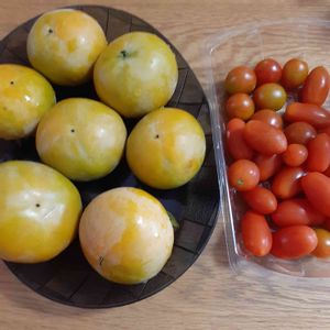 柿とミニトマトが採れました!柿は50個位、なったと思います。風邪をひかない為にも食べています。 ミニトマトは小さいですが、また出来はじめました🍅🎶😄