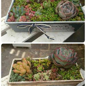 Berryさんのリメ缶にチマチマ寄せしました❤多肉ちゃんもリメ缶も引き立てあって可愛さ100倍❤(^_-)❤
