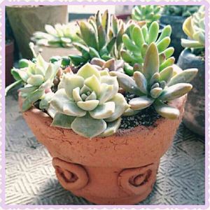 今日は6年生の次女が学校で作った土器に寄せ植えしました💜 次女は多肉用にって……こっそり底に穴を開けて作ってくれたので ナイスです👍