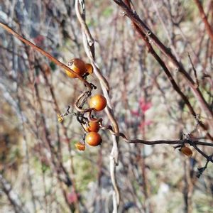 ✳️1月3日撮影✳️ 🌿木の実・ヘクソカズラ (屁糞葛) の実2 🍒 木に絡み付いて、芸術的な造形を作っています。 臭いと言われる黄褐色の実も綺麗にみえます✨✨ 《つるの特徴》 つるの長さ:~10m つるの基部は木質で、左巻きに伸びる。つるや葉の裏面には毛がまばらにある。 つるは葉が落ちて枯れた後も長い間、朽ちずに残り、昔は紐代わりに使われた。 《名前の由来》 花や実を揉んだり、葉を傷つけたりすると、 カメカメムシのような不快な匂いするため。 《別名》 ヤイトバナ サオトメカズラ 《花期》8~9月