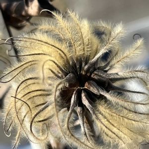 羽毛のように見えるのは 伸長した花柱の毛が 生じたものです🎶 まだ残っています🌀 クレマチス果球 キンポウゲ科