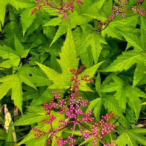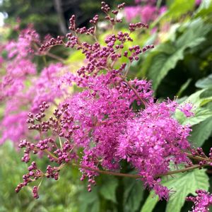 軽井沢で咲いてた花 2025.6.22 1️⃣2️⃣キョウカノコ(京鹿子) 葉っぱが紅葉の形 山野草 日本原産 コシジシモツケソウとシモツケソウの交配種とか。 3️⃣4️⃣5️⃣シモツケ 葉っぱは笹の形 落葉低木 🏷️木曜モフモフに参加させていただきます。