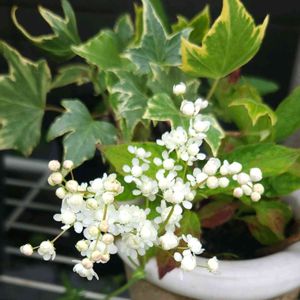 白花キョウカノコ🤍 アイビーのところにキョウカノコが進出、偶然のコラボが涼しげでなんともいい感じ😊