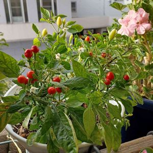 こんばんは✨ 今日も一日お疲れ様でした(*ov.v)o 昨日のベランダ🎵 五色唐辛子随分赤くなって来ました❤️ まだまだお花咲いていますがちょっと寒くなってきたのでそろそろ終わりでしょうかσ(^_^;)?