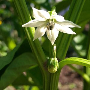 おはようございます♪ 初めてのトウガラシ、一番花❀ (☆▽☆)