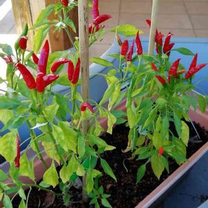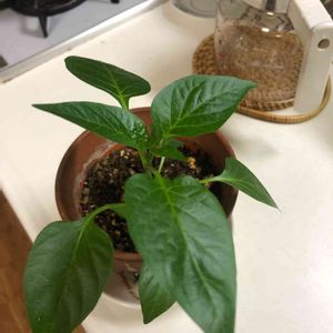 トウガラシの苗。頂きものです。赤い実は鑑賞用としても綺麗なので育ててみようと思います。