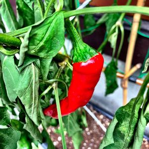 遅撒きで心配だったトウガラシがやっと実を付けました!3苗で何個収穫できるかな😅