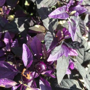 トウガラシ🌶 (観賞用) 葉のムラサキ色が、朝陽を受けて輝いて見えます😊